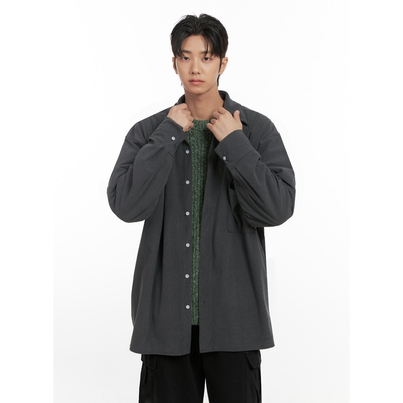 Men’s Corduroy Collared Button-Up Shirt ID413