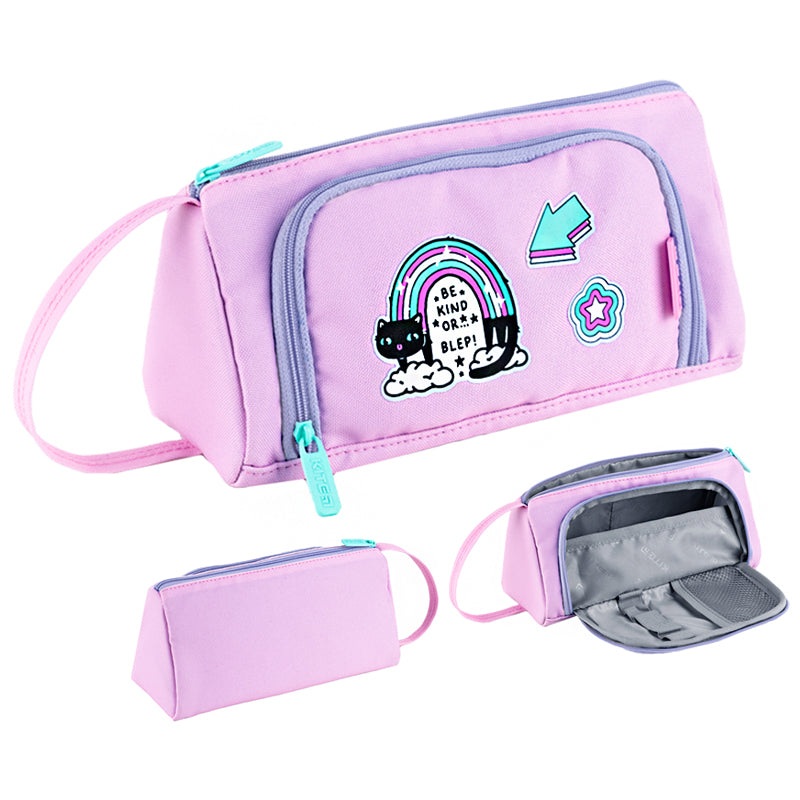 Pencil case Kite K24-2700-2 is made of durable polyester. A trendy accessory that can be used as a school pencil case or a fashionable makeup bag. It perfectly organizes pens, pencils, and stationery, and also gives aesthetic pleasure.