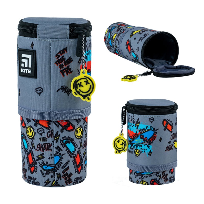 Pencil case Kite K24-684-2 is an original model with a bright design and a “super option”: It’s a stable pull-out-cup-shaped pencil case with a bright design and the ability to expand and fold back. You can adjust the height in just one movement, and when you do – a funny pattern appears as the pencil case grows. Due to the stable bottom, the pencil case can be placed on a desk like a cup. It is lightweight and spacious. The compact cylindrical shape doesn’t take much space in the backpack.