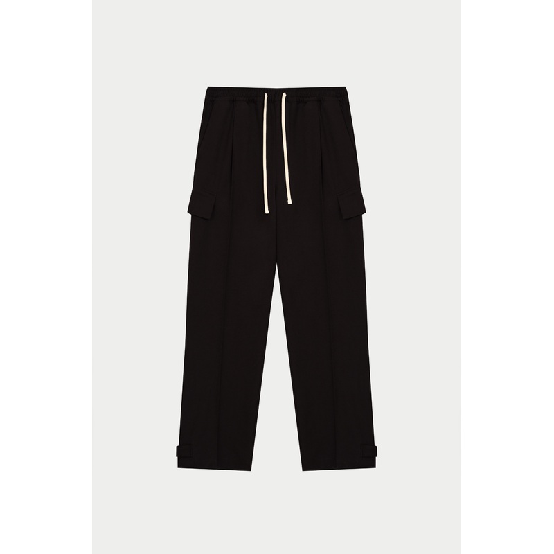 Colour: BlackDetails:- Relaxed wide leg fit- Self fabric waistband with herringbone draw cord fastening- Side seam pockets- Pleating detail down front legs- Functional welt pocks to back- Popper fastening at hem- Functional side pockets with exposed pocket