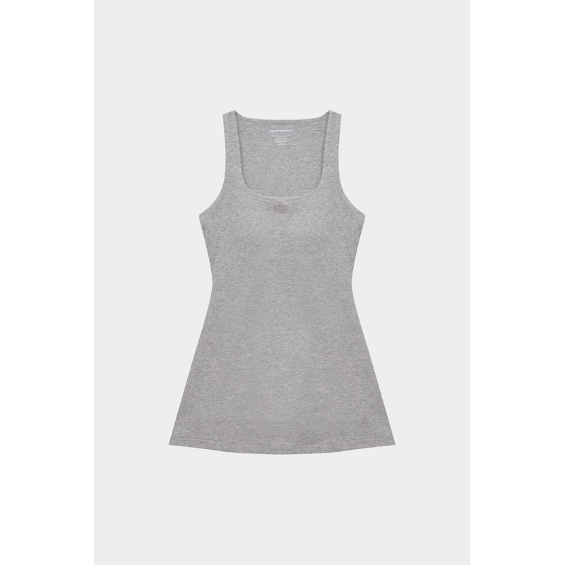 Colour: Grey MarlDetails:- Soft touch scoop neck bodycon dress- Low scoop neckline- Tonal embroidery to centre below front neckline- Built in shorts- High racerback detail back necklineModel wear size 6 and is 5'9Fabric Composition: 60% Cotton, 40% Acrylic