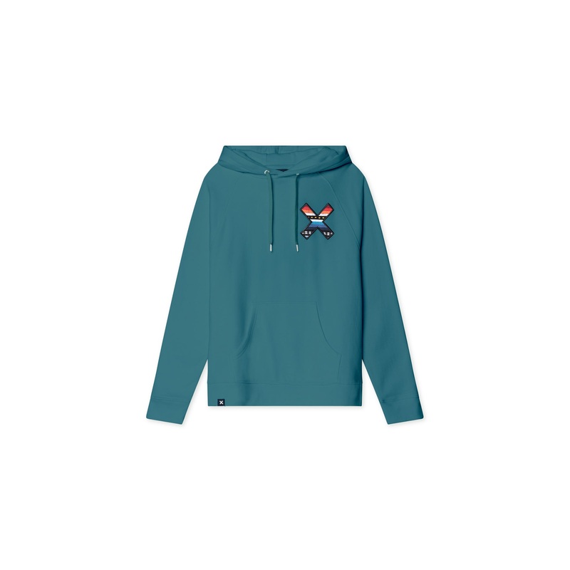 Hoodie con nuestra clsica X bordada: delantera en el pecho y trasera en la espalda. Bolsillo delantero centrar inferior con apertura en ambos lados. Confeccionada con algodn 100% orgnico.