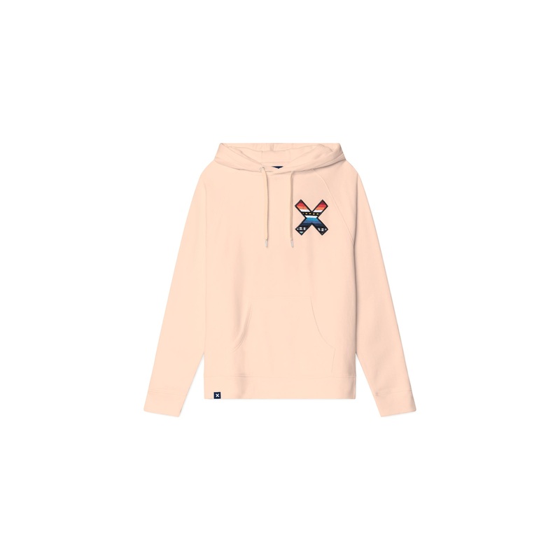 Hoodie con nuestra clsica X bordada: delantera en el pecho y trasera en la espalda. Bolsillo delantero centrar inferior con apertura en ambos lados. Confeccionada con algodn 100% orgnico.