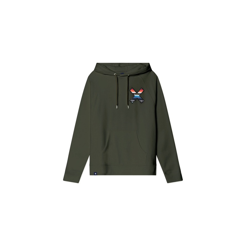 Hoodie con nuestra clsica X bordada: delantera en el pecho y trasera en la espalda. Bolsillo delantero centrar inferior con apertura en ambos lados. Confeccionada con algodn 100% orgnico.