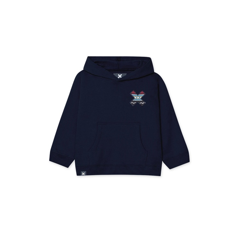 Hoodie con nuestra clsica X bordada: delantera en el pecho y trasera en la espalda. Bolsillo delantero centrar inferior con apertura en ambos lados. Confeccionada con algodn 100% orgnico.