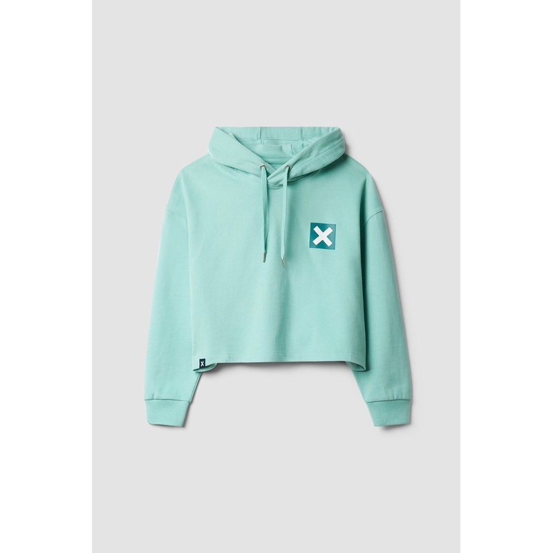 Hoodie con nuestra X en la parte delantera y trasera. Confeccionada con algodn 100% orgnico y corte crop. Sin cardar para un resultado ms veraniego.